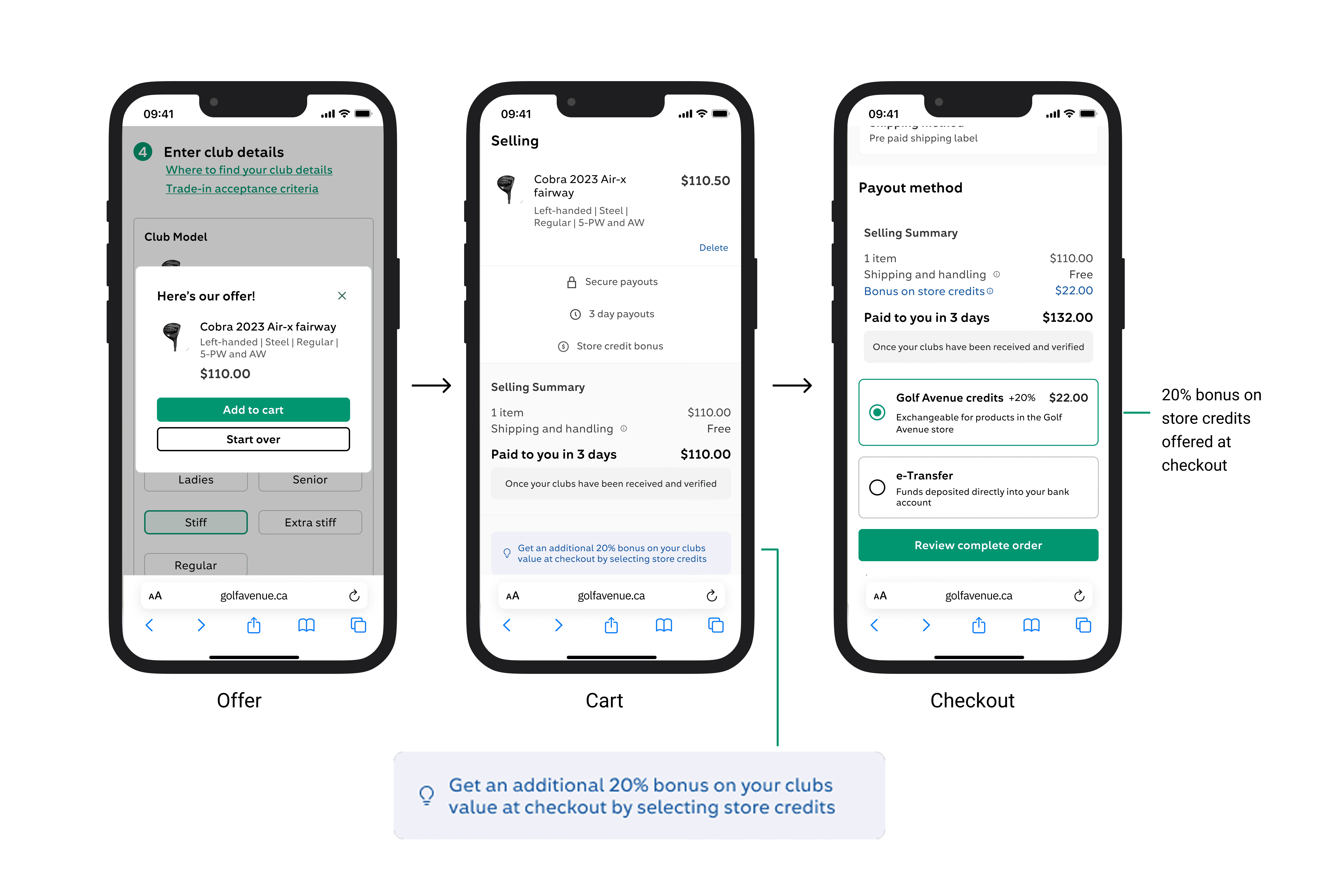 Existing experience: offer step, cart, checkout with bonus applied