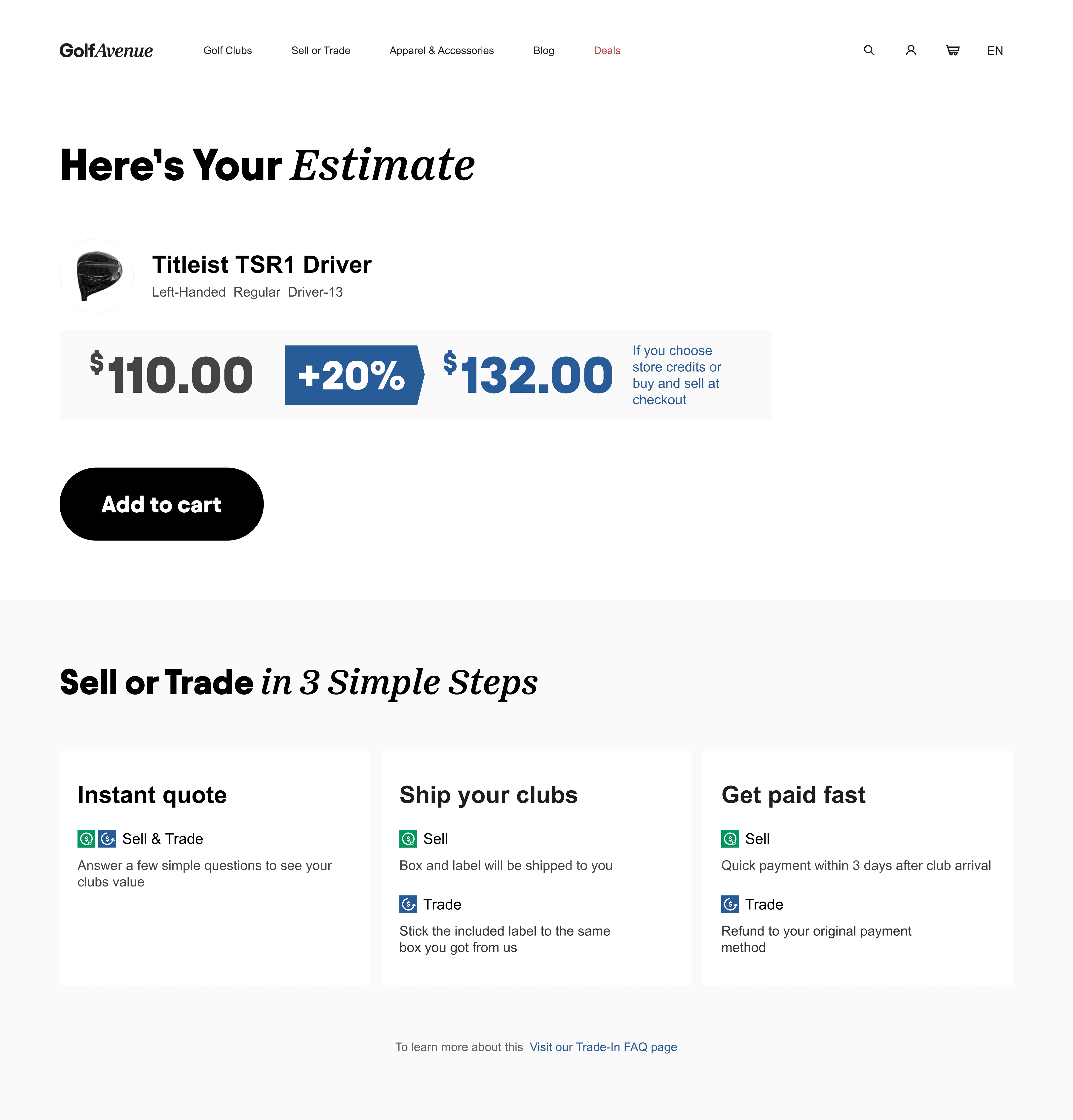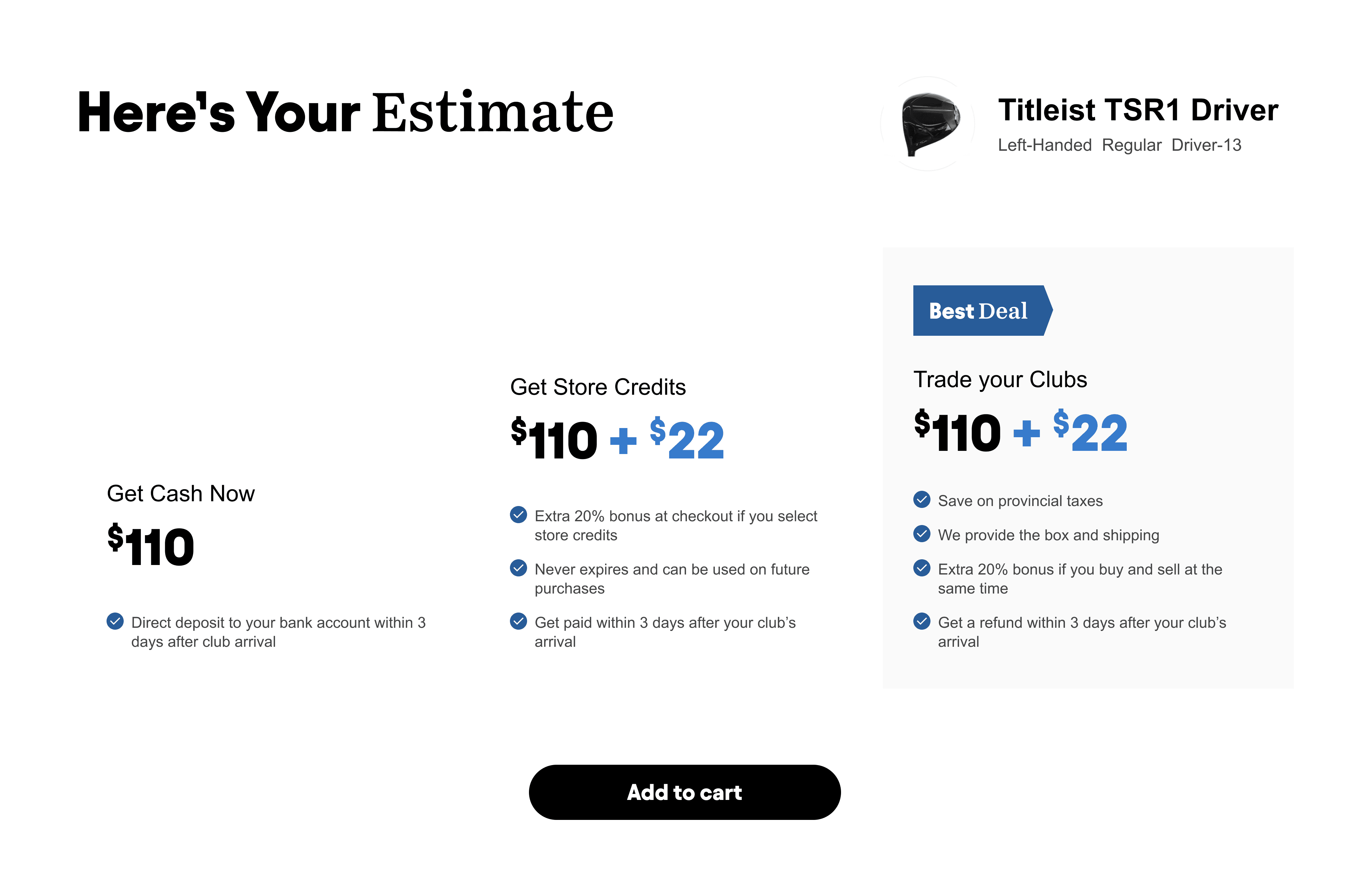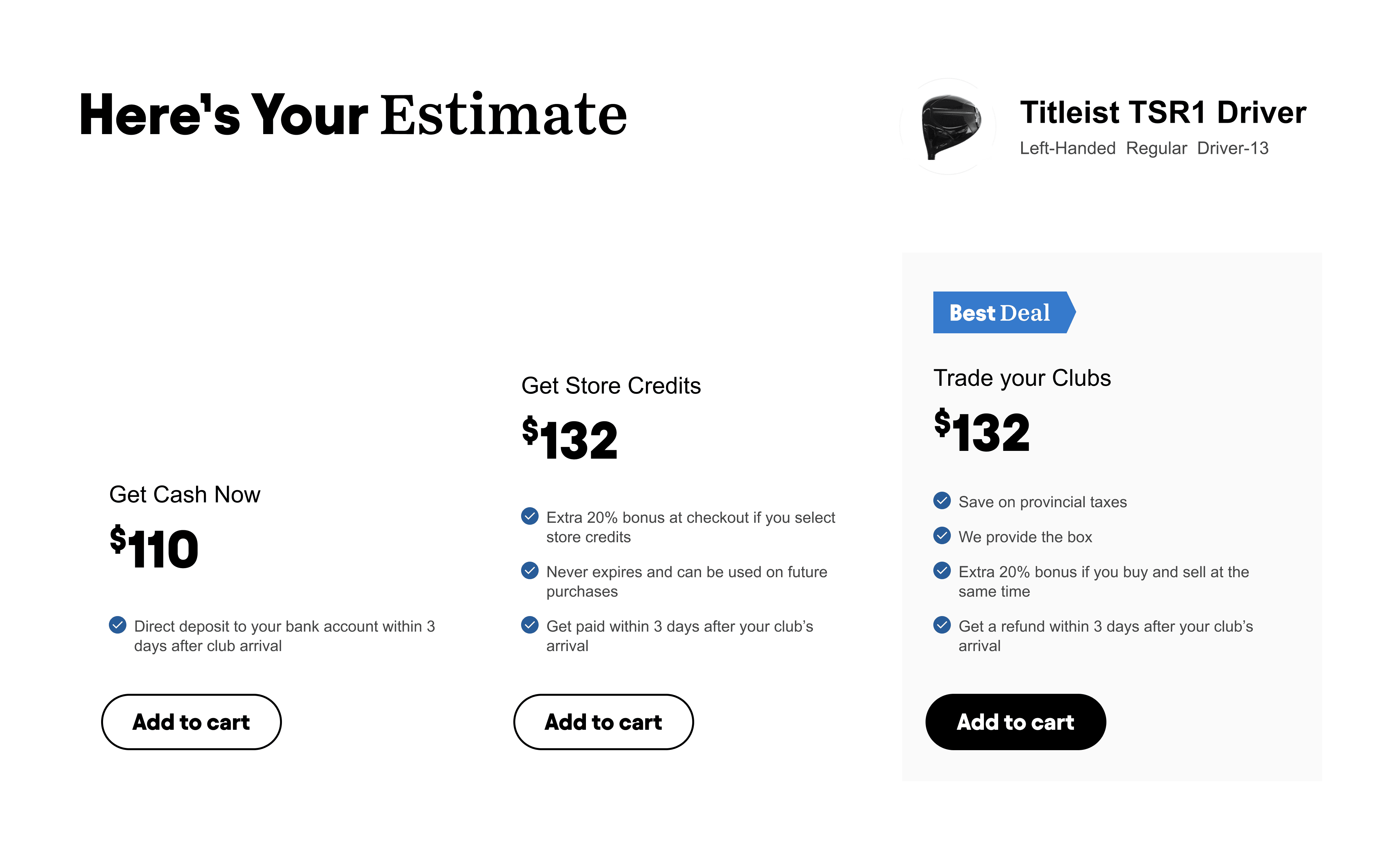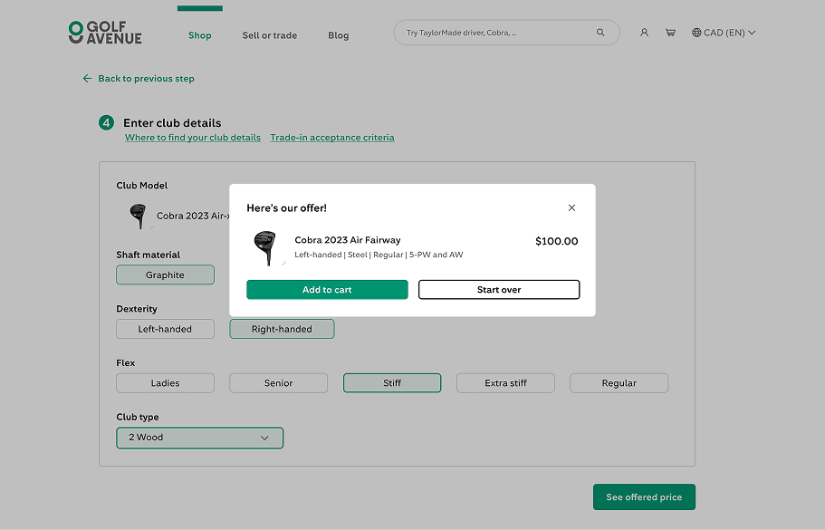 The Trade-in flow had one huge drop-off and that was when users saw the price offered for their clubs.