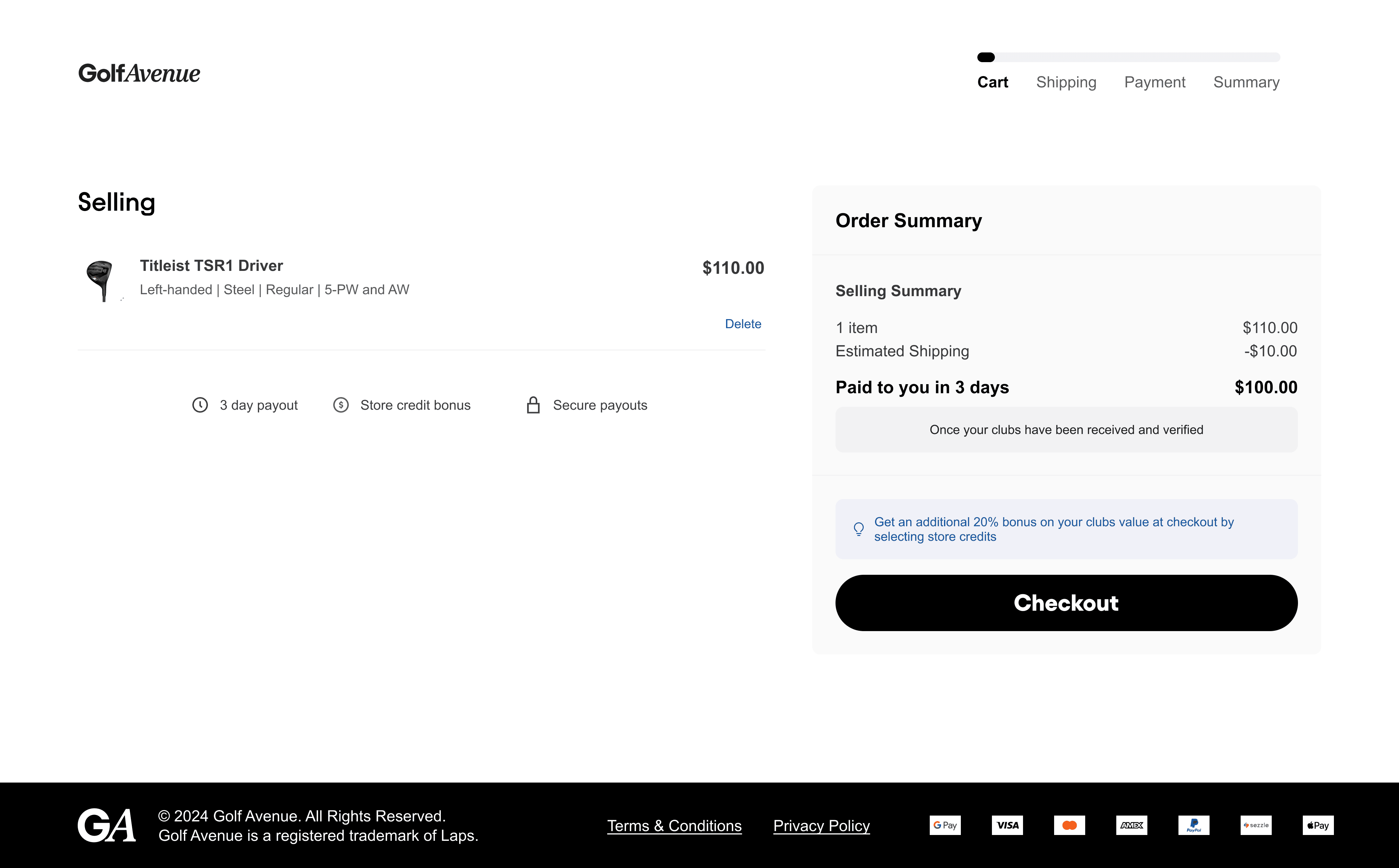 Offer step showed $110